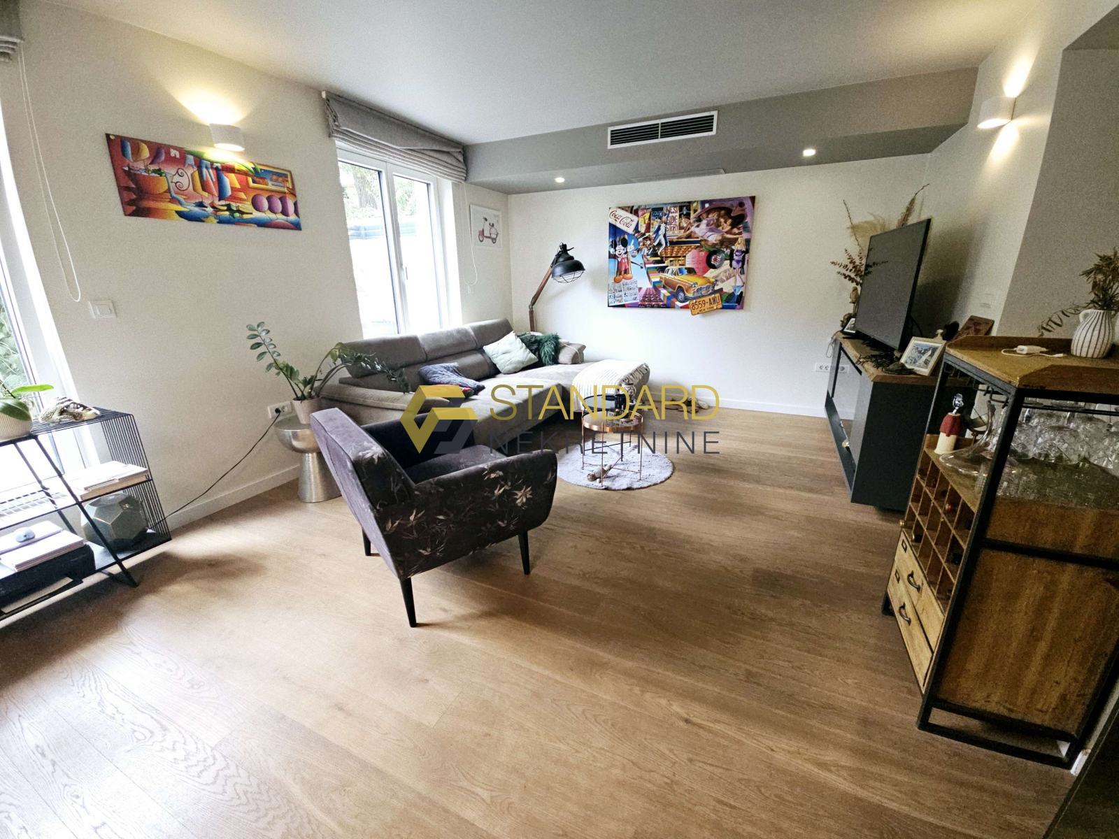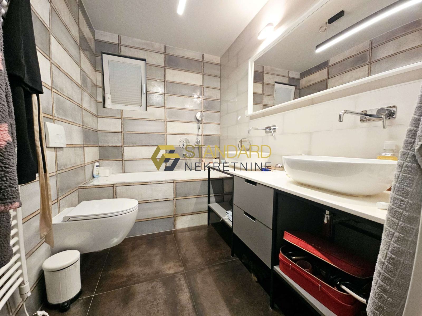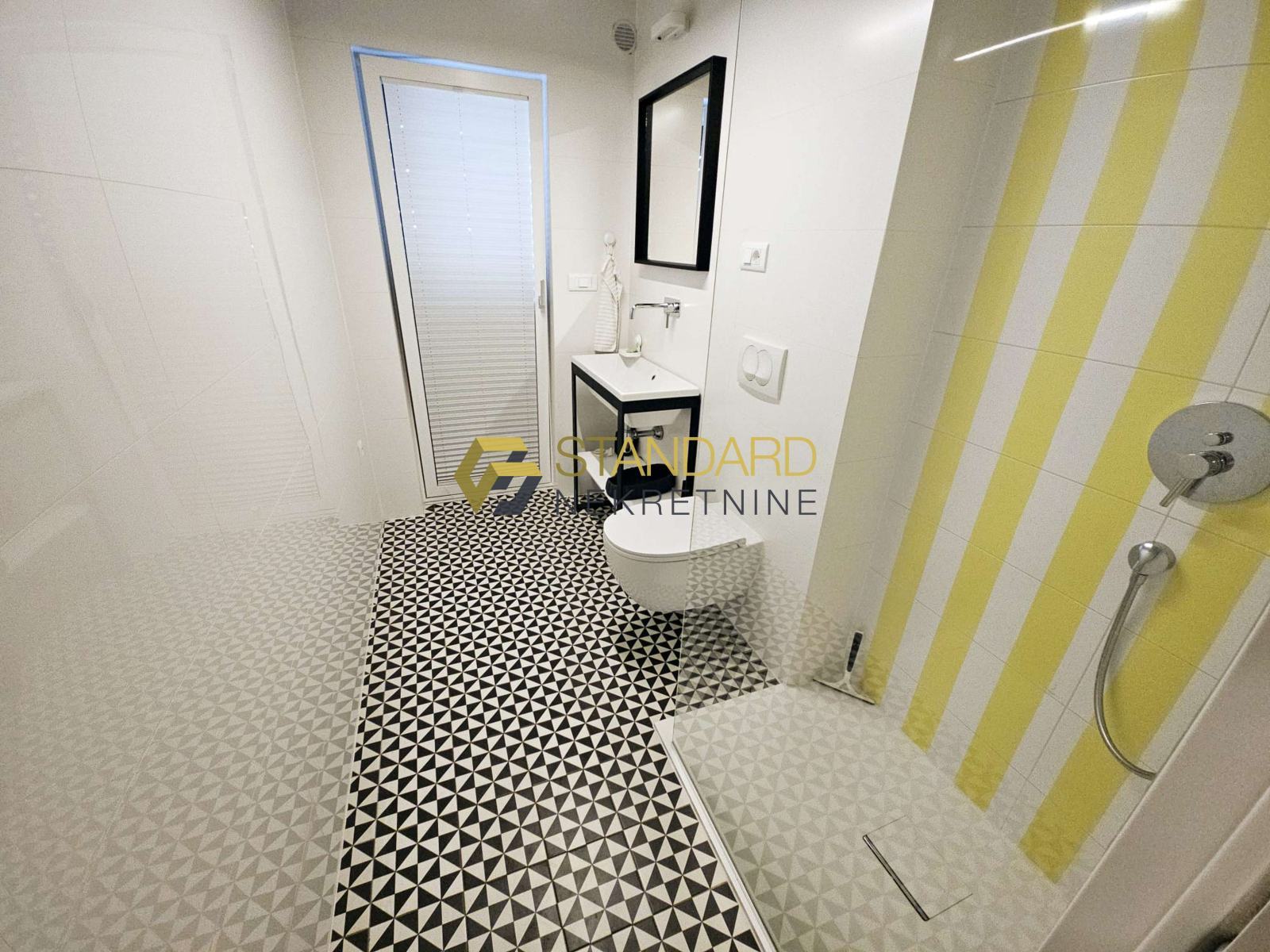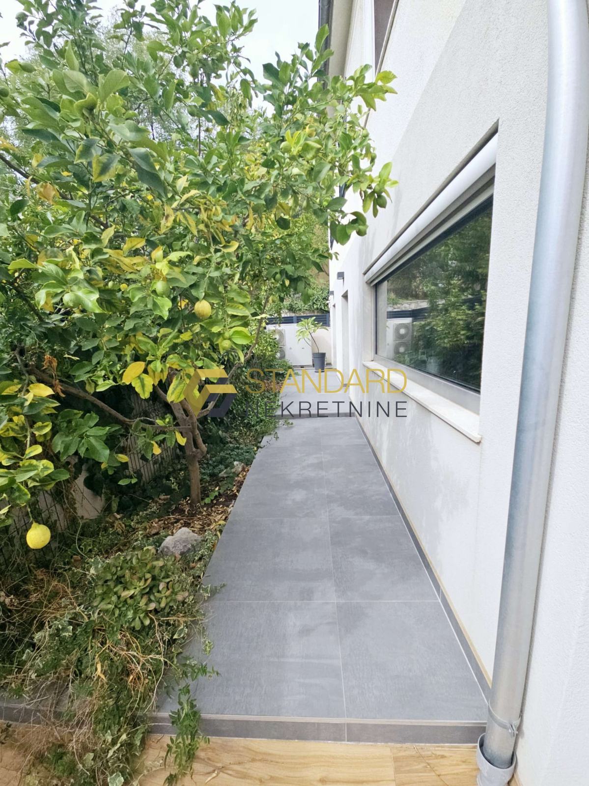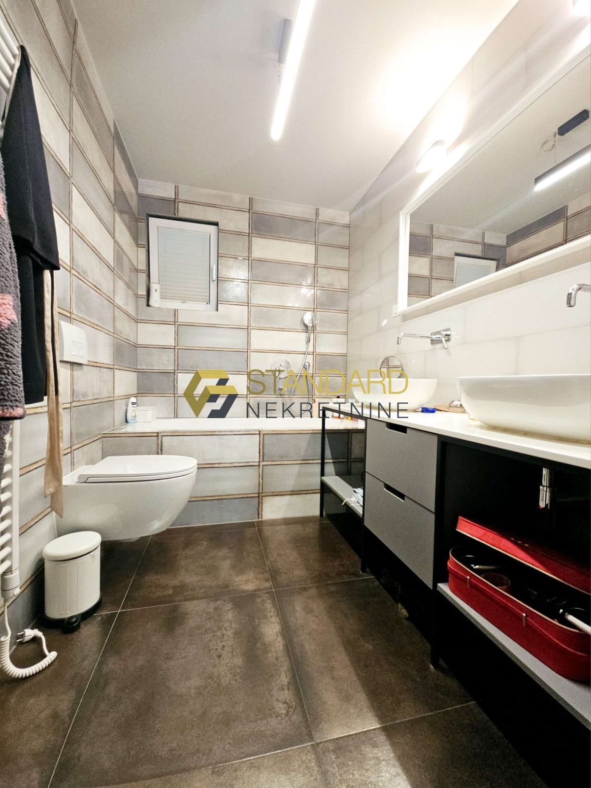 Stan se sastoji se od prostrane kuhinje, blagovaonice, dnevnog boravka (open space koncept), dvije spavaće sobe, hodnika, dvije kupaonice, ostave/praone, terase, privatnog bazena, dvorišta površine 121 m2, te garaže površine 35 m2. Garaža je upisana kao pomoćni objekt, na posebnom zemljišno knjižnom ulošku, odvojena od kuće, te zbog toga postoji mogućnost nadogradnje još jedne etaže, što ovoj nekretnini daje dodatnu vrijednost.