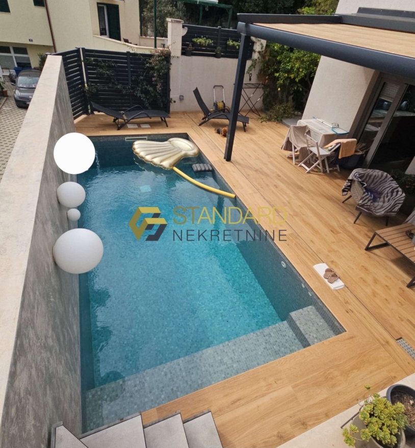 Elegantan stan, moderno uređen, kompletno opremljen i luksuzno namješten, smješten na prekrasnoj lokaciji u blizini šume Marjan i centra grada.